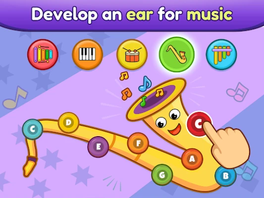 A Baby Piano, Drums, Xylo & more alkalmazásban a picik számos hangszerrel ismerkedhetnek meg. Játszhatnak zongorán, melyen az alapvető hangjegyeket sajátíthatják el, vagy kipróbálhatják a xilofont, amit a gyermekfejlesztési szakértők is kiemelten ajánlanak a korai zenei neveléshez. Fedezzék fel a dobok ritmusát, a szaxofon kihívásait, vagy a pánsíp kellemes dallamait. A hangok palettája itt nem ér véget: állati és járműhangok, sőt még elektronikus zongora is várja őket, segítve a hallás és a ritmusérzék fejlődését. Az olyan klasszikus dallamok, mint a Hull a pelyhes fehér hó vagy a Boci, boci tarka, könnyedén megtanulhatók.