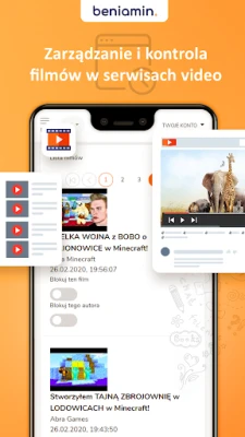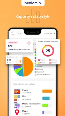 Az internetes tartalomszűrés funkcióval az Aplikacja Beniamin hatékonyan zárja ki a nem kívánt, gyermekek számára nem megfelelő weboldalakat és tartalmakat, még inkognitó módban is biztonságos böngészést biztosítva. Emellett gondoskodik a biztonságos keresési eredményekről minden böngészőben. Különösen hasznos a népszerű videómegosztó oldalon megtekintett videók elemzése: a szülői panelen keresztül áttekintheti gyermeke összes megnézett videóját, és azonnal blokkolhatja a nem kívánt csatornákat vagy tartalmakat. Részletes jelentések és statisztikák segítségével bármikor nyomon követheti gyermeke digitális aktivitását, és finomhangolhatja a beállításokat.