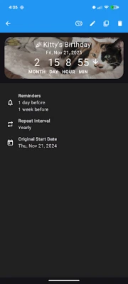 Képzelje el, hogy soha többé nem felejt el egyetlen fontos dátumot vagy eseményt sem! Legyen szó születésnapokról, évfordulókról, egy várva várt utazásról vagy egy jelentős határidőről, ez az intuitív alkalmazás segít minden pillanatot nyomon követni. Pontosan visszaszámlálhat a jeles napig, percre pontosan beállítva, vagy felszámlálhatja az eltelt időt egy emlékezetes esemény óta. Akár egyszeri, akár rendszeresen ismétlődő eseményről van szó, az alkalmazás megbízhatóan emlékezteti Önt, garantálva a nyugodt felkészülést és az örömteli várakozást. Mindez ráadásul teljesen reklámmentesen, a zavartalan felhasználói élmény érdekében.